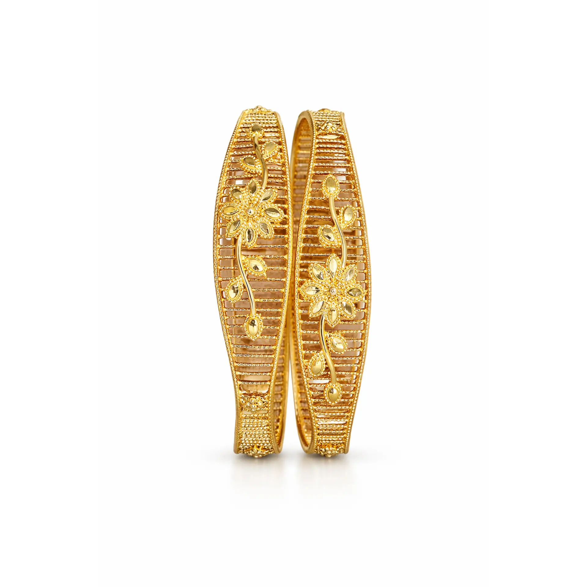 Elegant floral design gold bangles pair