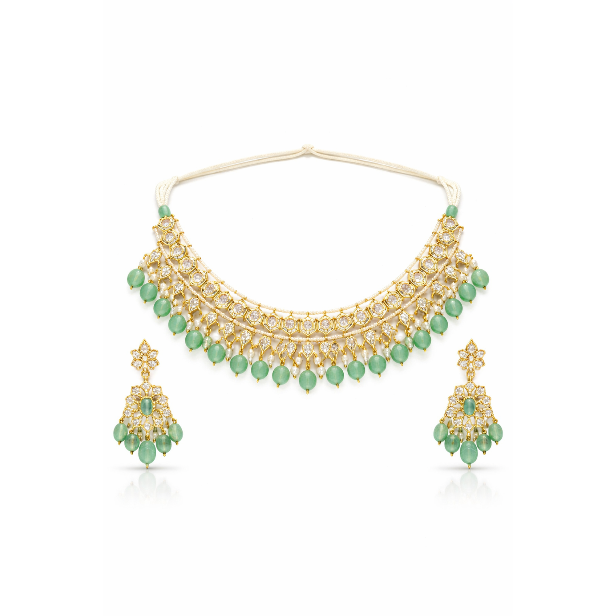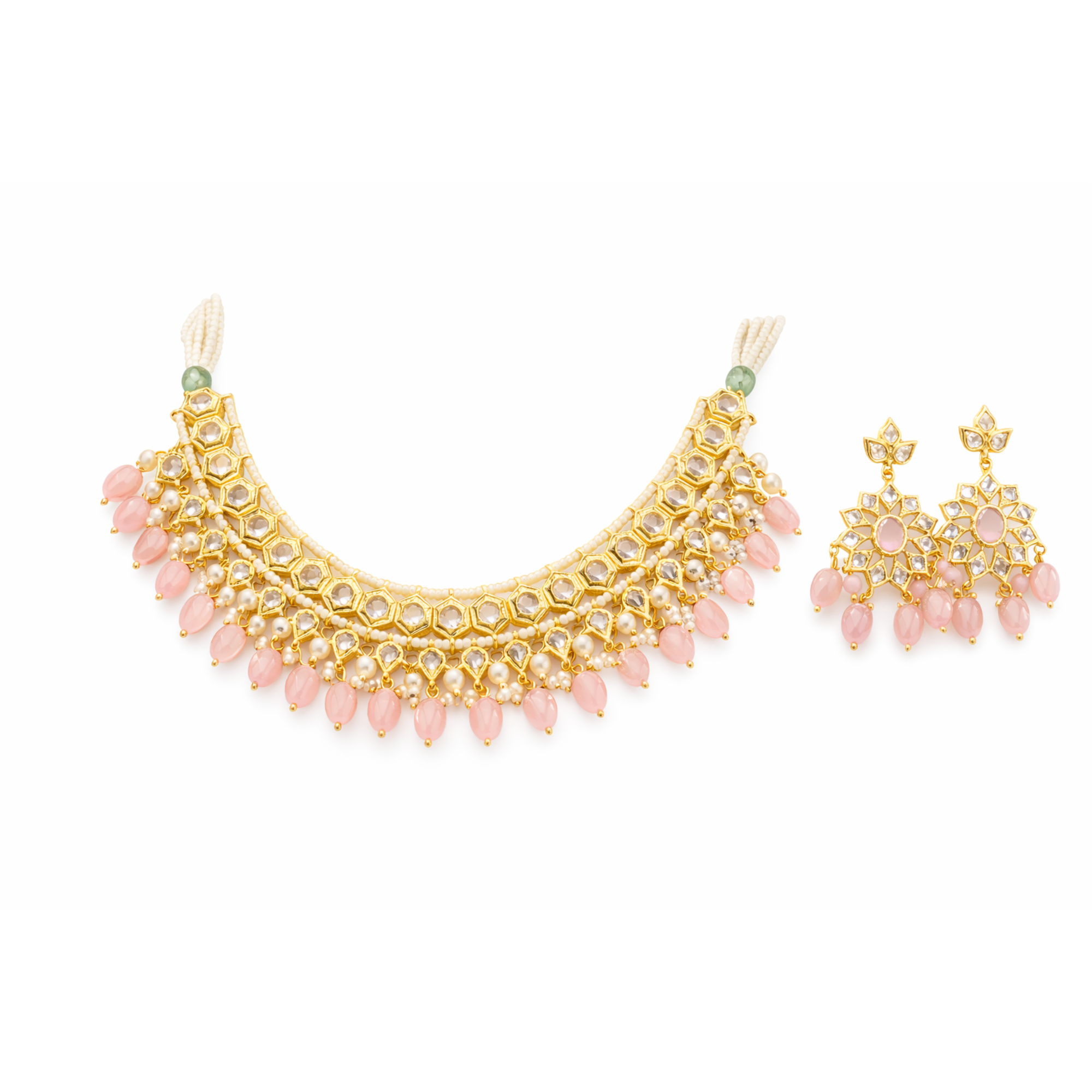 Beautiful 18K Gold Plated Necklace & Earrings with elegant polki design. Perfect for weddings & festive wear.
